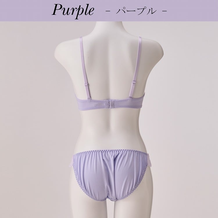 カップを包み込むようにあしらわれた生地は微細なラメが控えめに光り輝きます。