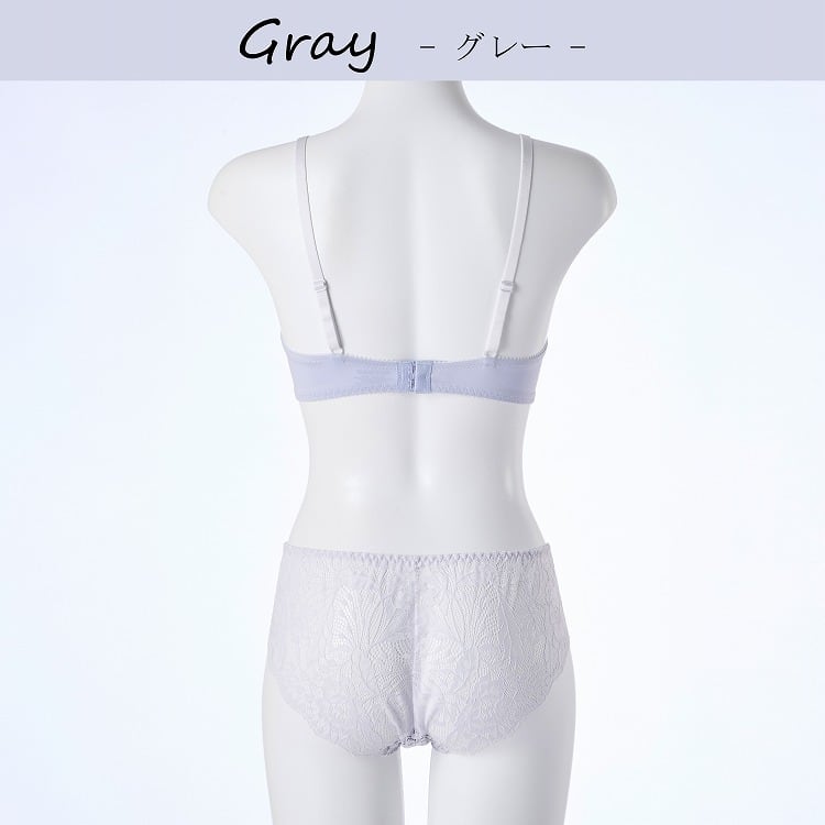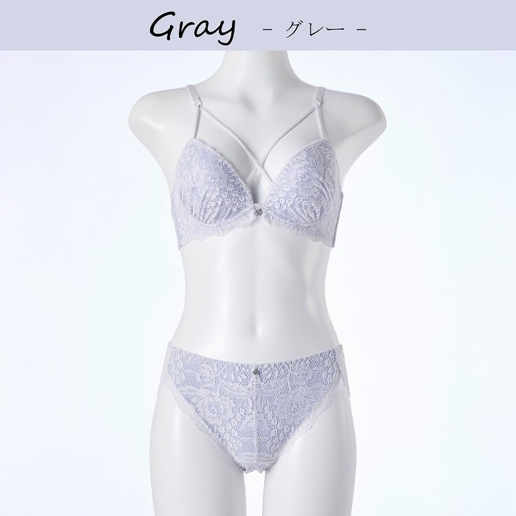 くすみカラーをメインに少し大柄のストレッチレースでヘルシーさを出したブラセット。