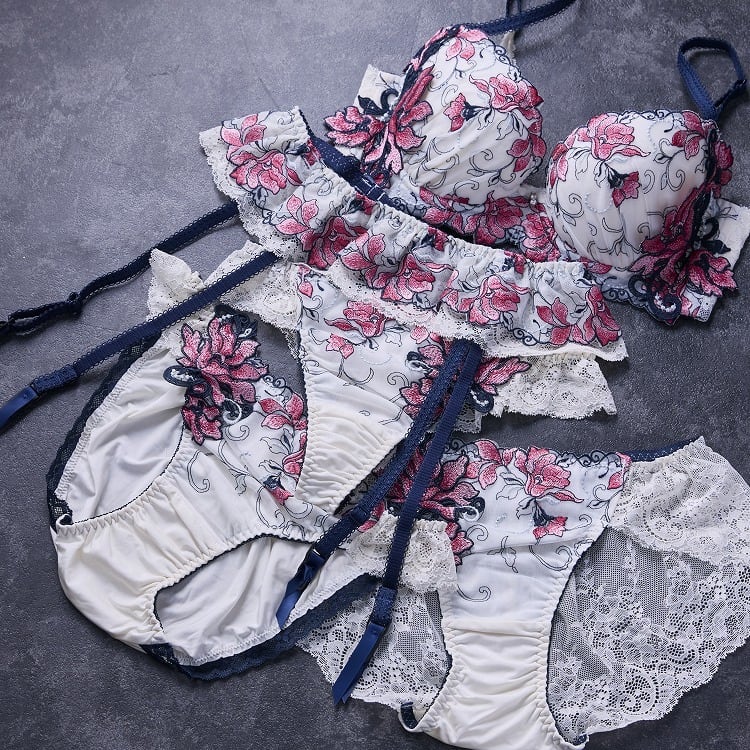 可憐な百合の花をモチーフに、心まで華やぐレースデザインと繊細なカラーリングが目を惹く上品なランジェリー。