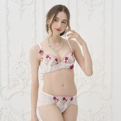 ブルーのカメオのチャームを中心に飾れば骨董品のように美しいランジェリーの出来上がり。